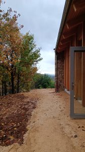 Après la démolition du préau de l’ancienne école publique, l’espace est à nouveau occupé par le Tiers-lieu qui a, nous semble-t-il, belle allure ! Et, cette fois-ci, le bâtiment à ossature bois laisse apparaître le paysage sur trois côtés… La municipalité a souhaité en effet un espace pleinement ouvert sur les deux faces, réalité permise par la combinaison du bois et du verre. Ainsi, les habitants pourront allégrement traverser de la cour de la mairie au jardin public (qui sera réorganisé) sans difficultés. Et la 3eme ouverture sur le paysage, c’est une large baie vitrée implantée au sud, vers la vallée, qui la permettra…